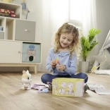 Emportez facilement le lapin partout grâce à l’emballage en papier avec poignée, qui sert de petite maison de transport. À l’intérieur, retrouvez aussi des sachets en papier surprises – des accessoires thématiques pour encore plus de scénarios de jeu. La patte magique révèle le sexe de l’animal et aide les enfants à créer un lien personnel avec lui.