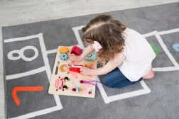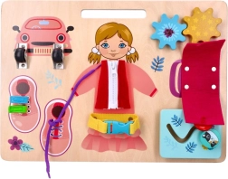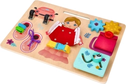 Découvrez la planche de jeu Anička, ludique et éducative, qui développe la motricité fine et la pensée logique des enfants. Avec des éléments comme un chat coulissant et divers systèmes de fermeture, les enfants apprennent en jouant.