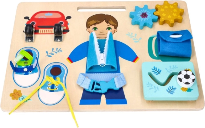 Apprend à lacer des chaussures, à fermer des fermetures éclair et à manipuler des boucles, des compétences utiles au quotidien.