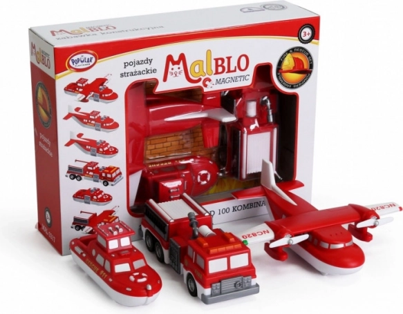 Les blocs magnétiques MALBLO MAGNETIC offrent un système ingénieux combinant aimants et encliquetage, grâce auquel les enfants échangent facilement cabines, éléments centraux et parties arrière des véhicules. À partir d’un set sur le thème des secours, assemblez un bateau, un avion et un camion de pompiers – et ce, en de nombreuses variantes.