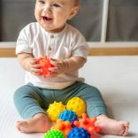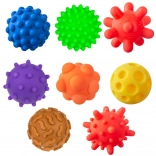 L'ensemble de 8 balles différentes à surface texturée offre de nombreuses possibilités de jeu, d'exercice et de détente. Leur diamètre compact d'environ 6 cm facilite la prise en main par les petites mains.