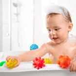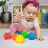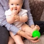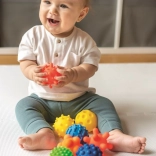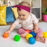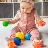 La conception sans trous empêche l'eau de pénétrer – les balles sont donc hygiéniques, faciles à nettoyer et parfaites aussi pour le bain. L'ensemble de huit balles différentes offre une large palette de textures pour des jeux sans fin, des massages relaxants des paumes ou des pieds et des exercices tout en douceur.