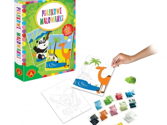Un jeu artistique pour enfants très apprécié avec peinture au sable, où l’on découvre progressivement les différents éléments prédécoupés de l’image pour révéler une surface adhésive. Les parties découvertes sont saupoudrées de sable, soit dans la couleur du motif, soit selon son imagination, pour créer une belle illustration.
