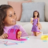 L'ensemble amusant Barbie Soin des chiens encourage à prendre soin et à se préoccuper des animaux. Il comprend une poupée Barbie, deux chiens et des accessoires avec fonction de changement de couleur.