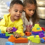 Le coffret contient 150 grands blocs, dont des éléments spéciaux : une base à roues pour véhicules, des blocs avec de petits yeux pour des personnages ludiques, des feuilles pour des thèmes nature et des éléments de toit pour les constructions. Le tout est entièrement compatible avec les autres sets MEGA BLOKS, permettant d’étendre librement la collection.