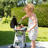 Grâce aux roues, le grill peut être facilement déplacé, que les enfants décident de jouer dans le jardin ou à l'intérieur de la maison.