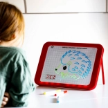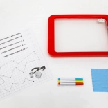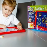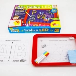 Le tableau LED Carotina est un outil éducatif idéal pour les enfants. Il propose un programme éducatif basé sur 30 cartes d'apprentissage pouvant être utilisées par la méthode programmée du tracé. Il suffit de placer la carte sur la base en papier et de l'insérer sous l'écran transparent du tableau. Le dessin s'effectue à l'aide de trois marqueurs fluorescents inclus dans le set. Grâce à ces marqueurs, les enfants peuvent dessiner à plusieurs reprises et effacer leurs dessins avec un chiffon sec. Le tableau LED est polyvalent comme une ardoise classique et brille presque comme une enseigne au néon !
