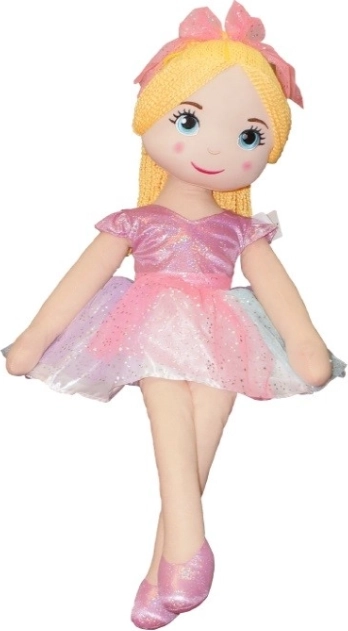 Grande poupée en tissu Adelina rose 80 cm. Moelleuse, douce, avec des détails brodés sécurisés et des couleurs vives. Parfaite pour le jeu créatif et les câlins.