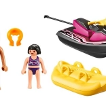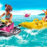La boîte comprend des figurines d’une femme et d’une fille qui explorent l’eau ensemble sur le scooter des mers et le bateau banane. La fille est protégée par un gilet de sauvetage, garantissant sa sécurité pendant la course endiablée. Le set est une excellente introduction à l’univers fascinant de Playmobil Family Fun.