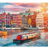 Découvrez le charme d’Amsterdam avec ce puzzle de 500 pièces représentant un pittoresque canal avec des maisons colorées et un bateau. Une fois assemblé, l’image mesure 48 × 34 cm. Grâce à la qualité d’impression premium, aux couleurs vives et aux encres sûres et écologiques, profitez d’un divertissement agréable et relaxant.