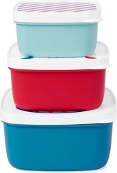L’ensemble de 3 boîtes en plastique légères est idéal pour les mini-sandwichs, biscuits, fruits et légumes. Grâce aux couvercles solides, le goûter ne se renverse pas et reste frais plus longtemps. Les boîtes passent au lave-vaisselle (panier supérieur) et, grâce à leur design empilable et gigogne, prennent un minimum de place dans le tiroir ou le sac à dos.