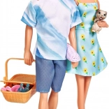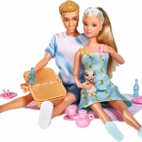Partez pour une aventure partagée avec les poupées Steffi et Kevin. Ce duo est parfaitement prêt pour une sortie d’été, accompagné d’un petit chien et équipé d’une couverture, d’un panier de pique-nique et d’un service de vaisselle.