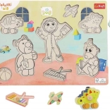 Découvrez des puzzles encastrables en bois ludiques et résistants avec les personnages sous licence BOBASKI I MIŚ. L’ensemble comprend 8 pièces amovibles avec poignées en bois et une base avec formes fraisées, où un graphisme guide en noir et blanc aide à l’appariement. Un excellent jouet pour le développement de la motricité fine, l’apprentissage des formes et la concentration, idéal dès 18 mois.