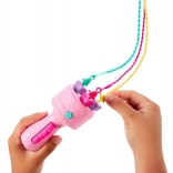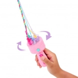 La poupée Barbie du royaume féerique Dreamtopia a de très longs cheveux avec des mèches arc‑en‑ciel qui invitent à la création de coiffures. Il suffit d’insérer 2 à 3 mèches dans l’outil de tressage et, d’une pression, de créer des coiffures torsadées envoûtantes. Trois clips arc‑en‑ciel maintiennent la coiffure en place, tandis que des barrettes colorées complètent le look final.