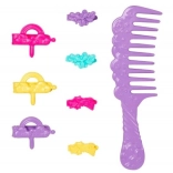 Des clips colorés, des barrettes et un large peigne facilitent le démêlage et assurent une fixation solide des nouvelles coiffures sans tiraillement.