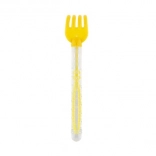 Quatre formes de poignées différentes: cercle, cœur, carré et fourchette, en couleurs bleu, rouge, vert et jaune.
