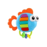 Hochet musical et anneau de dentition en forme de poisson pour les tout-petits dès 3 mois. En appuyant sur les touches, il joue des mélodies et des notes individuelles, et les touches s’illuminent. En plastique pour un nettoyage facile, avec piles incluses et verrou de sécurité.