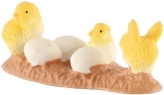 Décorez votre maison avec ce beau élément de décoration en plastique représentant des poussins jaunes et des œufs blancs sur un socle marron. Cet accessoire mignon apportera de la fraîcheur et le charme du printemps ou de Pâques dans votre maison.