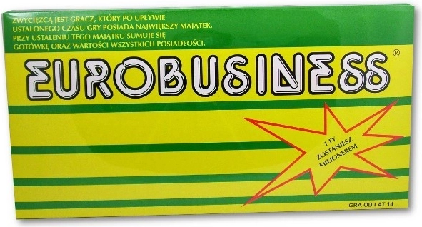Des investissements judicieux, l’achat et la vente de biens immobiliers, ainsi qu’une évaluation précise vous apporteront des profits, de la richesse et la victoire. Devenez millionnaire, jouez à un jeu dont l’issue peut être totalement différente à chaque partie, qui surprend, vous tient en haleine et offre un divertissement incroyable pour toute la famille ! Jouez à EUROBIZNES et montrez à tous que vous avez la tête pour les affaires ! Le jeu est prévu pour 2 à 4 joueurs à partir de 14 ans.