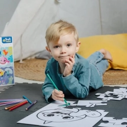 Au verso du puzzle, vous trouverez deux activités supplémentaires : des coloriages et un petit jeu avec des éléments de coloriage, qui favorisent l’expression créative et développent la sensibilité artistique des enfants.