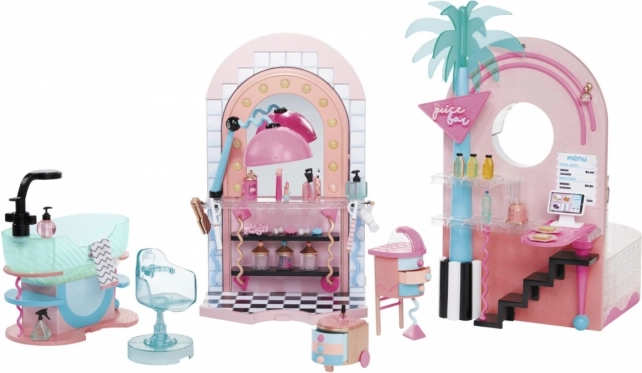 L.O.L. Surprise Salon et Spa est un set de jeu parfait pour les amateurs de poupées de mode et de collections. Il offre toute une gamme de fonctionnalités, notamment une cascade, des stations pour coiffer les cheveux et soigner les ongles, et même un bar à jus frais !