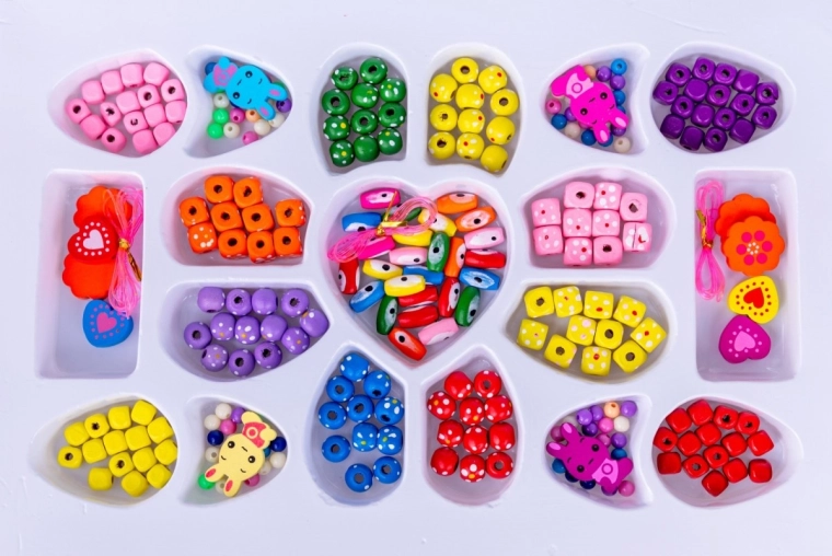 - Bijoux DIY créatifs – perles et éléments décoratifs à enfiler.