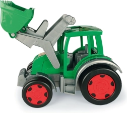 Tracteur massif de 60 cm de long avec chargeur, dans des couleurs de ferme originales.