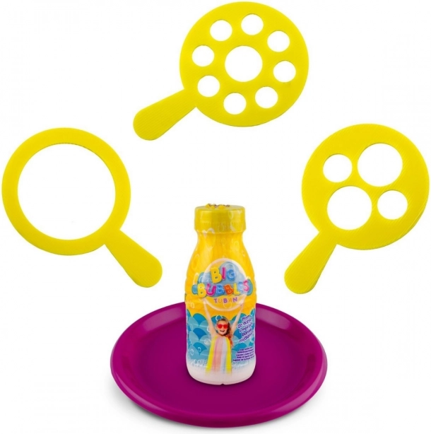 Avec ce kit pour grandes bulles TUBAN, vous créerez en un rien de temps de petites comme d’immenses bulles. Les différentes formes d’ouvertures des anneaux permettent de réaliser des effets variés et des guirlandes de bulles. La solution de qualité est conçue pour créer facilement des bulles stables et brillantes, pour le plaisir des enfants comme des adultes.