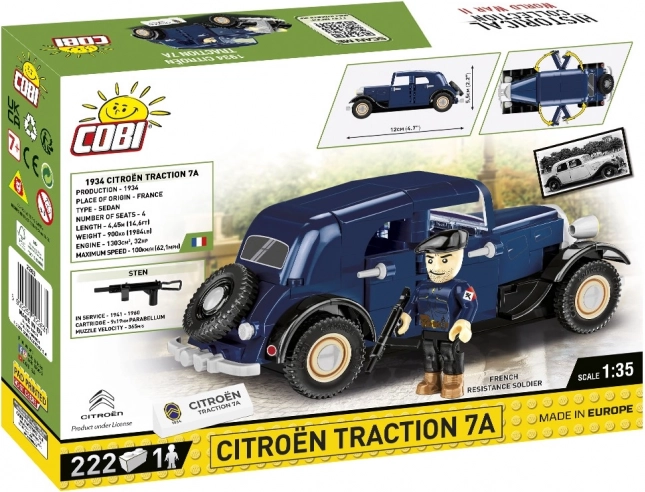 Construisez l’iconique voiture française de 1934 – CITROËN Traction 7A – à l’échelle 1:35 avec 222 pièces COBI. Modèle sous licence officielle CITROËN, doté de impressions de qualité sans autocollants, d’un montage facile grâce à un guide intuitif, et incluant une minifigurine de résistant français avec accessoire Sten. Entièrement compatible avec d’autres sets et fabriqué dans l’UE selon les normes de sécurité.