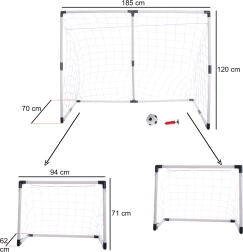 Le but de football pour enfants 2 en 1 est une excellente option pour engager vos enfants dans des activités sportives directement dans votre jardin. Il peut être facilement monté en deux petits ou un grand, s'adaptant à n'importe quel espace. L'emballage comprend également un ballon et une pompe pour que vous puissiez commencer à jouer immédiatement.