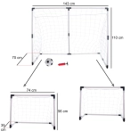 Ce but de football 2 en 1 est idéal pour les petits footballeurs qui souhaitent tester leurs compétences tant dans le jeu que lors de l'entraînement au tir au but. Son design unique permet de monter un grand but de dimensions 143x110x70 cm ou de le diviser en deux petits buts de dimensions 74x55x35 cm.