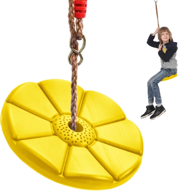Cette balançoire avec siège lisse en forme de fleur est idéale pour le jardin, la terrasse et même l’intérieur. Grâce aux cordes réglables, vous l’accrochez facilement à un arbre ou à une structure de jeu et offrez aux enfants un mouvement actif et de la joie au grand air.