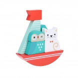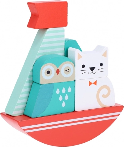 Nous vous présentons un adorable jouet en bois, idéal pour les plus petits explorateurs. Le bateau à assembler et équilibrer avec un motif de chouette et de chat offre un divertissement créatif et éducatif pour les enfants dès 12 mois. Ce jouet est composé de pièces en bois robustes, agréables au toucher et propices à la créativité.