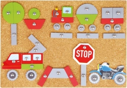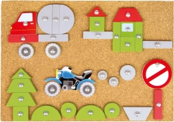 Ce jeu à marteler, à la fois ludique et éducatif, est idéal pour les petits créateurs. Les enfants peuvent concevoir leurs propres moyens de transport et les fixer sur la plaque en liège à l’aide d’un marteau et de petits clous. Les pièces colorées et imprimées offrent d’innombrables combinaisons et stimulent l’imagination.