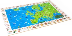 La carte colorée de l’Europe avec drapeaux et monuments emblématiques motive les enfants à découvrir les pays et leur position. L’assemblage développe la logique, l’orientation et le vocabulaire.