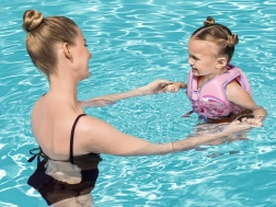 Gilet de natation léger pour enfants à motif MINNIE de Bestway aide les enfants de 1–3 ans (11–19 kg) à gagner en assurance dans l'eau. Il possède un rembourrage en mousse, une fermeture éclair frontale avec sécurité et une sangle d'entrejambe réglable pour éviter qu'il ne remonte. Le textile résistant avec UPF 50+ ne se décolore pas, le gilet est non gonflable et s'enfile facilement. Conçu comme une aide à l'apprentissage de la natation sous la surveillance d'un adulte.