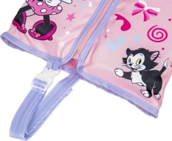Ce gilet de natation rose‑violet avec le motif apprécié de Minnie est un excellent compagnon pour les premiers pas dans l'eau. Les panneaux en mousse assurent une flottabilité fiable sans gonflage, il est donc immédiatement prêt à l'emploi et laisse aux enfants une liberté de mouvement.