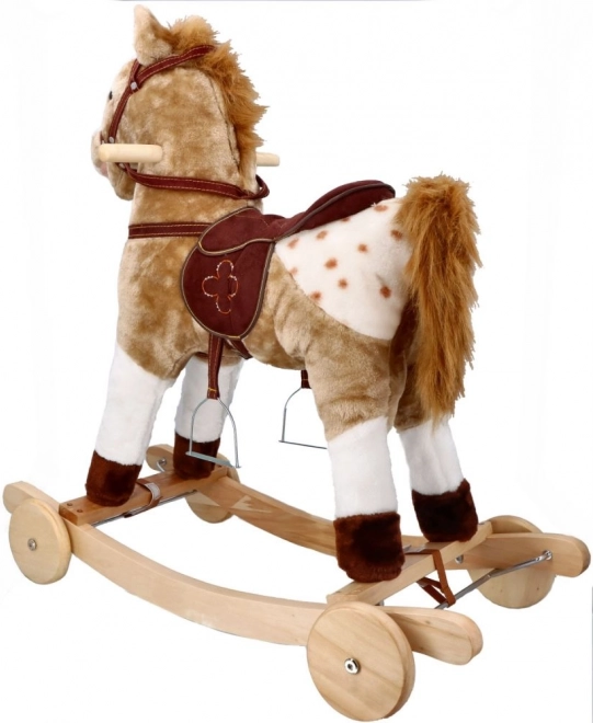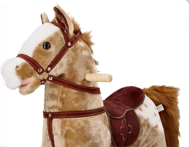 Le cheval à bascule Mustang avec roulettes offre une expérience de conduite réaliste pour les petits aventuriers. Grâce à une combinaison de bois et de textile, le cheval est à la fois solide et doux.