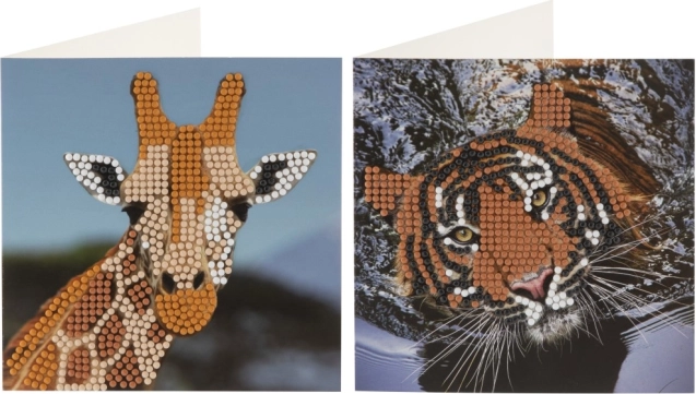 Kit de peinture diamant pour cartes 13 × 13 cm. Lot de 2, motifs fleurs, animaux, anniversaire. Activité créative facile au rendu scintillant.