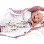 Cette poupée réaliste Llorens New Born est conçue pour un jeu d’imitation authentique. Son corps en tissu est doux au toucher, et ses membres en plastique articulés permettent des positions naturelles et la position assise. En appuyant sur la poitrine, la poupée prononce « maman », « papa » et émet un pleur réaliste, favorisant un jeu empathique.