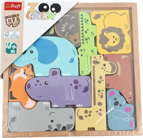Découvrez un divertissement malin avec le casse-tête en bois TREFL ZOO CREW. Les pièces en bois robustes en forme d’animaux tiennent parfaitement dans les petites mains et, grâce aux contours au fond de la boîte, les enfants apprennent facilement à placer correctement les pièces. Les enfants plus âgés comme les adultes peuvent augmenter la difficulté en cachant les contours ou en assemblant toutes les pièces en un carré en dehors de la boîte.