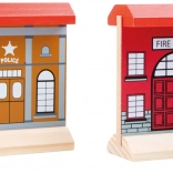 Les ponts et bâtiments du kit permettent à l'enfant de créer des scénarios réalistes et d'apprendre en jouant sur les différents rôles dans la communauté.