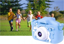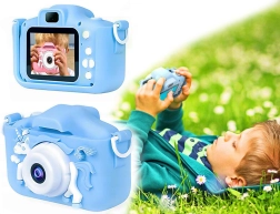 Un appareil photo compact et léger est équipé d'un écran de 2 pouces et offre des fonctions telles que le zoom 4x et des filtres colorés pour des photos uniques. Grâce à sa protection en silicone, il est protégé contre les chutes et les chocs.