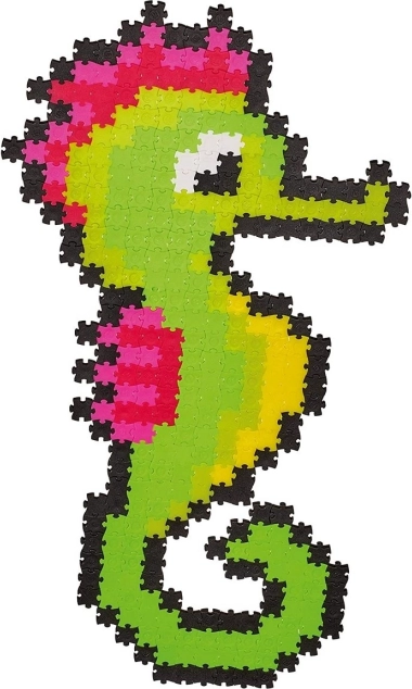 Découvrez un divertissement créatif avec les mosaïques Schmidt Jixelz et assemblez un adorable hippocampe à partir de 350 pièces résistantes. Les pièces s’emboîtent en douceur, le motif final ne se désagrège pas et vous pouvez assembler selon le gabarit 1:1 fourni ou laisser libre cours à votre imagination. Idéal pour développer la motricité fine, la concentration et la créativité.