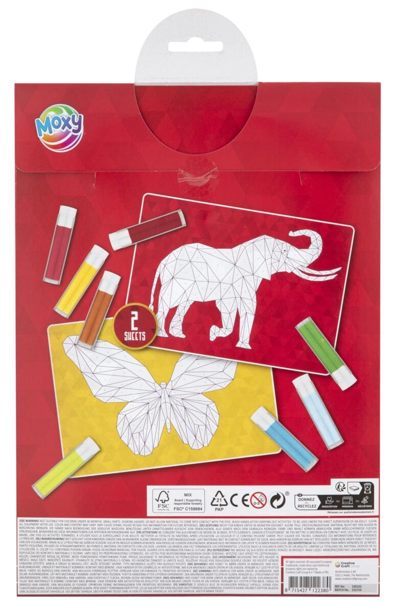 Zandafbeeldingen maken gebruik van zelfklevende sjablonen en gekleurd zand – vaak zonder lijm en schaar en met minimale rommel. Glitterafbeeldingen betoveren met de glans van glitters, krasafbeeldingen onthullen bonte achtergronden na het wegkrassen van een laag, en mozaïeken met stickers trainen de precisie. Elke creatieve set bevat doorgaans hoogwaardige voorbeelden, mozaïekstukjes, een kraspen, glitters of zand en duidelijke instructies voor een snel resultaat en een gevoel van succes. De materialen zijn gemaakt van veilige, niet-giftige componenten en stevig papier of karton.