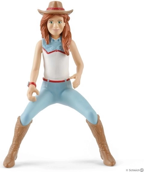 De western rijset Hannah brengt de sfeer van barrel racing-wedstrijden naar de kinderkamer. De set biedt kleurrijke tonnen en lage obstakels die vrij te plaatsen zijn, zodat het kind gemakkelijk een eigen rijbaan maakt. Dankzij het afneembare zadel en hoofdstel kan Hannah het paard klaarmaken voor training en wedstrijd.