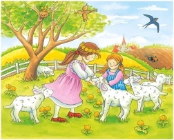 Stel scènes samen met een tractor, kinderen en dieren. Met 12 blokken maak je 6 complete afbeeldingen en oefen je het herkennen van vormen, kleuren en logisch leggen.