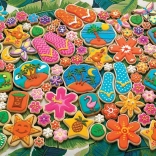 De COBBLE HILL Puzzel Tropische koekjes 1000 stukjes is perfect voor alle puzzelliefhebbers die op zoek zijn naar een uitdaging en een prachtig motief. De speciale stans met onregelmatige stukjes wijkt af van het standaard raster, waardoor het leggen leuker en uitdagender is. De hoogwaardige print en de rijke kleuren van het tropische koekjesmotief komen in ieder interieur tot hun recht.