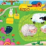 De puzzel bevat vier afzonderlijke afbeeldingen met 1-4 stukjes, wat samen een totaal van 10 stukjes maakt, die kinderen naar hun eigen fantasie kunnen samenstellen. Bovendien bevat het 16 omringende stukjes, die samen een totaalbeeld vormen van bijna 1 meter lang. Op deze manier vermaken kinderen zich niet alleen, maar leren ze ook eenvoudige rekenvaardigheid, omdat het aantal stukjes overeenkomt met het aantal figuren en dieren op de puzzel.