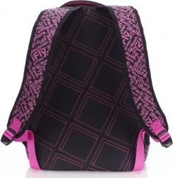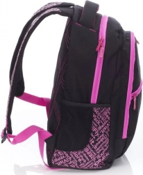 Zwarte rugzak met roze accenten die stijl combineert met functionaliteit, geschikt voor dagelijks gebruik.